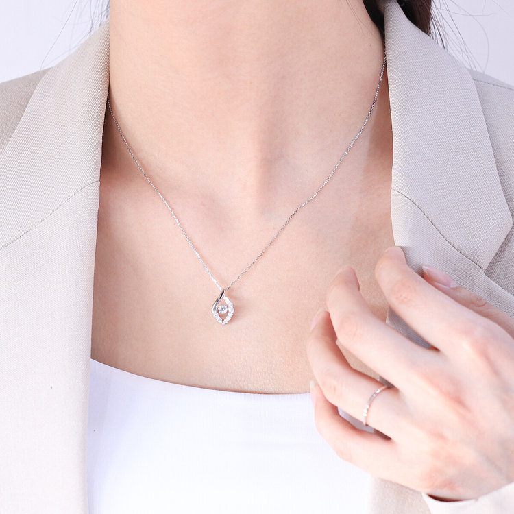 キュービックジルコニアが胸元で揺れるダンシングストーンネックレス。