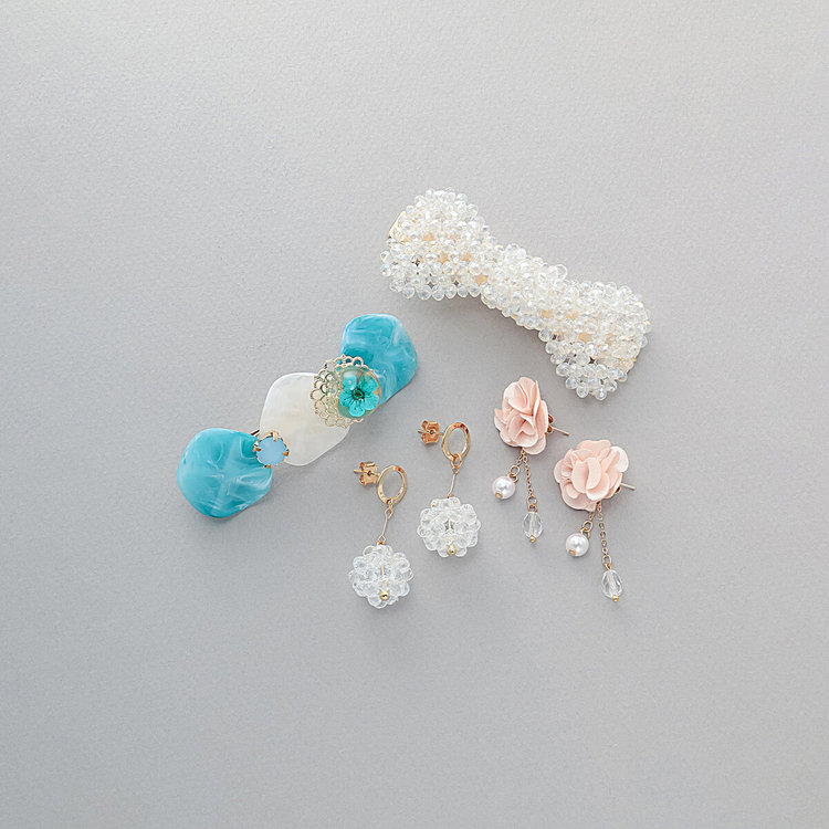 つけるだけでいつものコーディネートをブラッシュアップしてくれるピアス&ヘアアクセのセット。