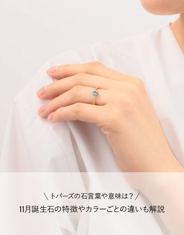 トパーズは11月の誕生石として人気のある宝石です。自分の誕生石を身につけることで、「幸運を呼び寄せる」「願いが叶う」と言われています。カラーバリエーションが豊富なトパーズは様々なコーディネートやお好みに合わせて選ぶことができます。大切な人へのプレゼントとしてはもちろん、ご自身のお守りとしてもいかがでしょうか。