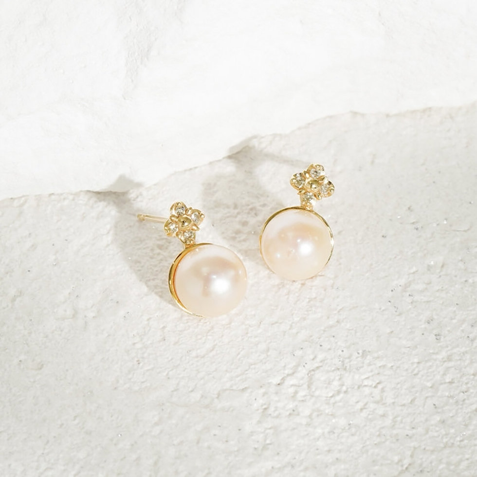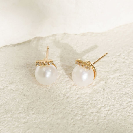 優しく控えめなピンクゴールドのパールピアスは、お顔周りを明るく華やかにしてくれて女性の魅力を引き立ててくれるでしょう。