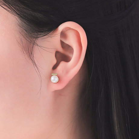 あこや真珠をイエローゴールドで包み込み、クラシカルな雰囲気のピアス。