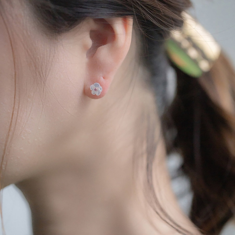 誕生花(バースフラワー)は、天然石やシェルを使いモチーフにした愛らしいデザインのピアス。