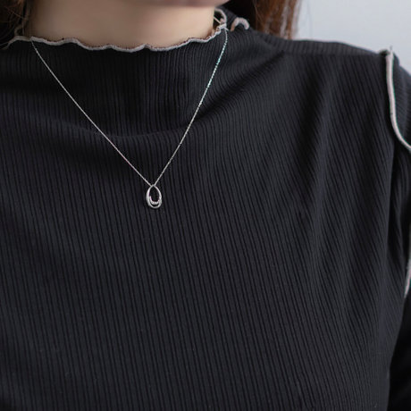 ハイネックは襟を折り返さないため短いネックレスも隠れません。
