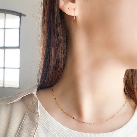 デザインチェーンはチェーンのみでキラキラと輝き、シンプルの中にも華やかな雰囲気が出て、レイヤードスタイルも楽しめるアイテムです。