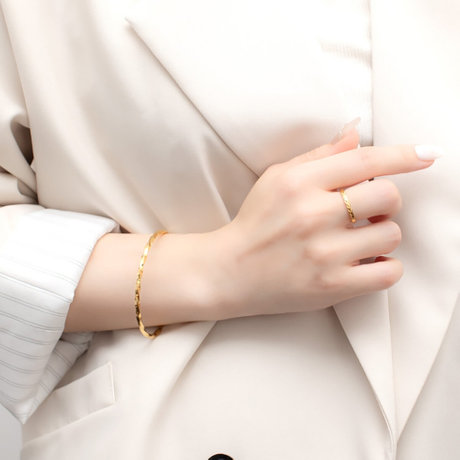 彫り込みデザインが輝くリングはどんなスタイルに合わせてもバランス良く着けられます。