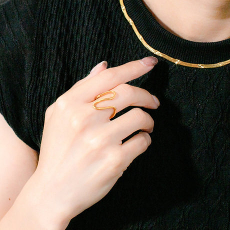 上下に波打つラインが指に巻きつくユニークなデザイン。