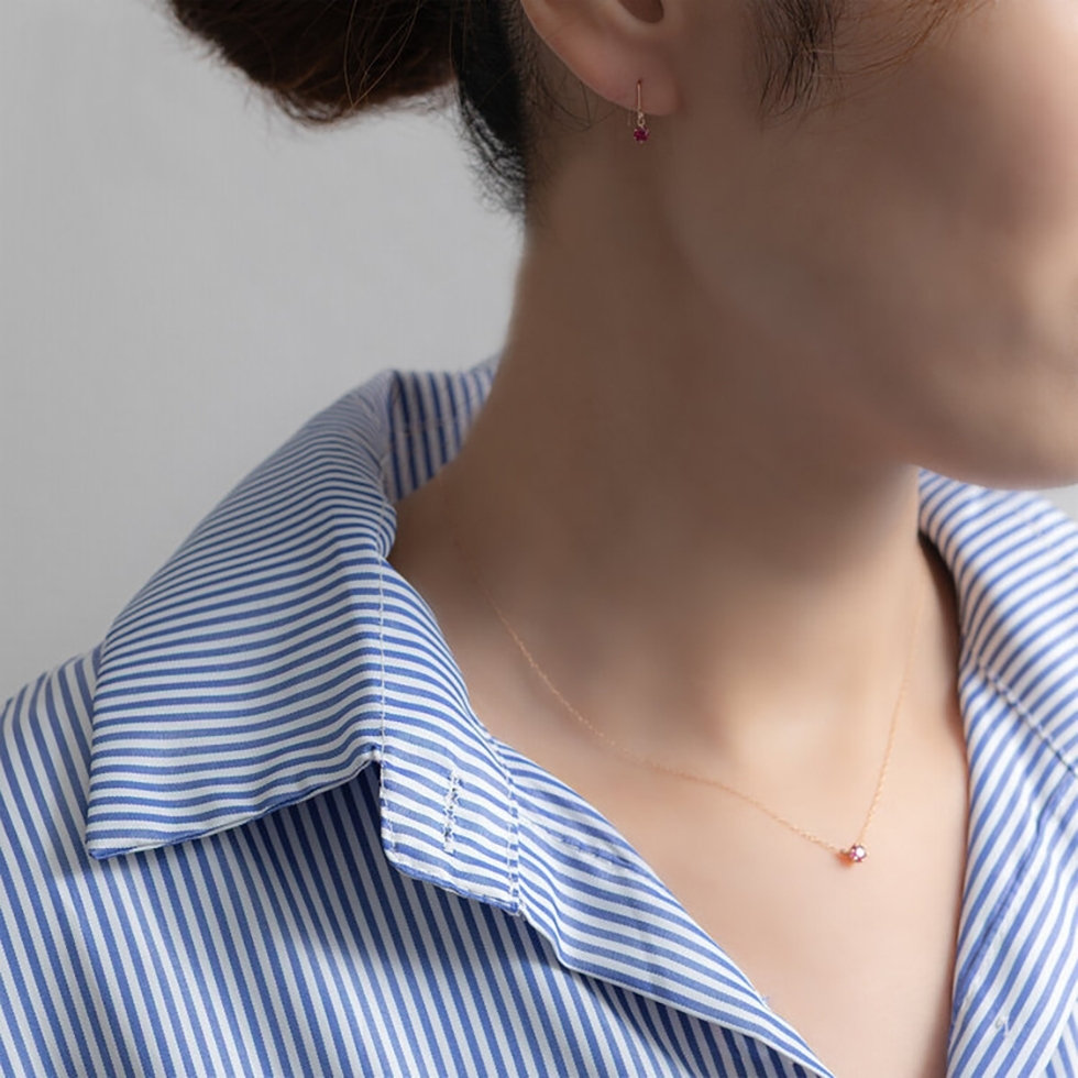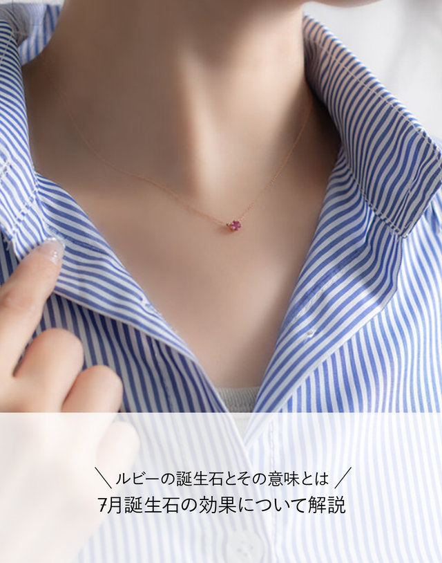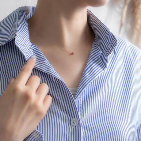 7月の誕生石としてもちろん、お守りジュエリーとして、ルビーの美しい赤色を身につけてコーディネートしてみてはいかがでしょうか。